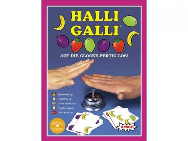 A játékosok egyszerre fordítják fel lapjaikat, és ha öt azonos gyümölcs képe tűnik fel a lapokon, akkor gyorsan a csengőre kell csapniuk. Aki gyorsabban csap, megnyeri a lapokat.A Halli Galli kártyás játék - Piatnik 5 éves kortól ajánlott fiúknak és lányoknak is