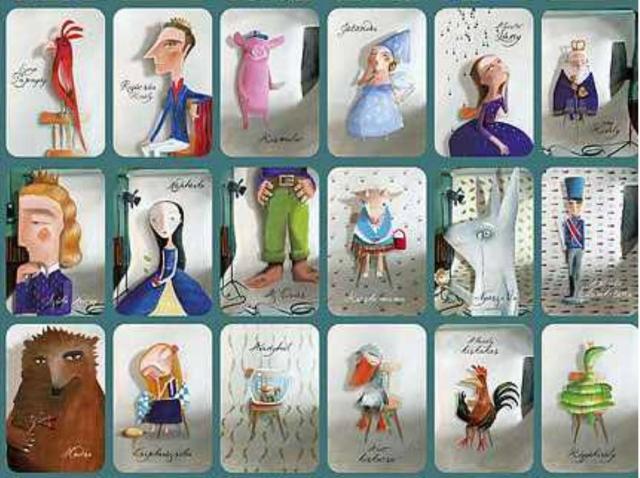játék során nem nézheti meg! Hogy rájöjjön ki ô (kit ábrázol a kártya) kérdéseket kell feltennie, amire a többiek csak igennel vagy nemmel válaszolhatnak. Pl.: -Ember vagyok? Fiú? Lány? stb....az ismert mesék segítenek a kérdések kitalálásában. Ha sikerült rájönnie, hogy kivé változott a kártyát megnézheti, megtarthatja és a következô játékos jön. Ha nem, a kártyát tegyétek félre. Előre állapodjatok meg, hogy hányszor változtok át és aki ebbôl a legtöbb kártyát nyeri, az győz!