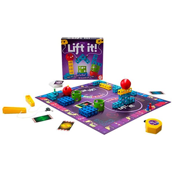 A Lift it egy mókás ügyességi játék építőelemekkel. Csak rögzítsétek a fejetekre a zsinóron lógó kampót és indulhat is az elemek kihalászása! Horgásszátok ki a kártyákon látható építőelemeket minél gyorsabban, hiszen időre megy a játék! Ketten is horgászhattok egy kampóval, így akár versenyezhettek is és még szórakoztatóbb a játék!