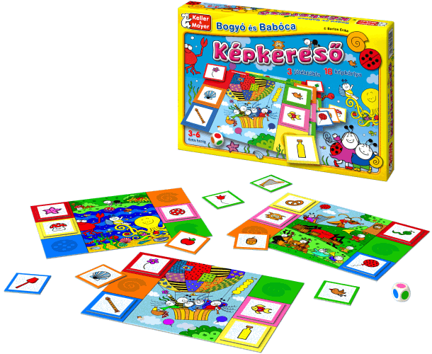 Vajon megtalálod, hogy melyik képen bújt el a perec, vagy hol lehet a piros lufi? Ha igen, tiéd lehet a kártya, de jól vigyázz, hogy jó helyre tedd! Dobj a színkockával, és ha ügyes vagy, te találod meg elsőnek mind a hat képet. A több formában is játszható játék fejleszti a megfigyelőkészséget, a koncentrációs képességet, valamint segít megtanulni a színek egyeztetését.