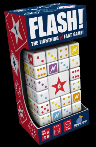 A Flash! – kockajátékban megfelelő kombinációkat igyekszünk kidobni és összegyűjteni, de míg a megszokott változatban korlátozott számú dobásunk van, itt annyi, amennyit csak akarunk. Lényeg a sebesség! A játékosoknak folyamatosan rajta kell tartania a szemét a többi villámgyors ellenfelén, mivel nem csak a listában szereplő kombinációk kialakítása számít, hanem az is, hogy ki milyen hamar készül el, és veszi el a pontokat érő lapkákat az asztal közepéről. Plusz csavart visz a játékba, hogy a színes dobókockákon nincsen egyes, hanem helyette egy jokerként funkcionáló villám, ami nem csak ellenfeleinket, de sokszor minket is megkavar a Flash vicces és pörgős társasjátékában.